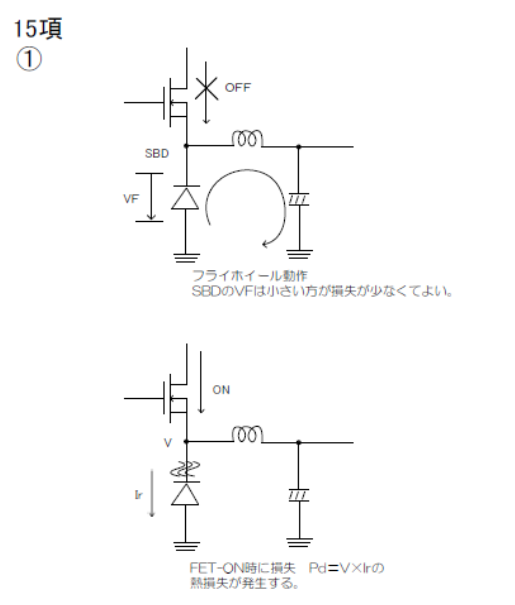 順方向電圧(VF)の小さいショットキーバリアダイオード(SBD)を選定しており、フライホイール動作時のロスも小さいのになぜ故障するのか最初はわかりませんでした。